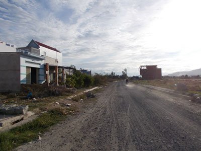 | Hệ thống đường sá chưa hoàn thiện ở khu tái định cư. |