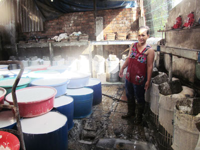 Ông Đinh Cường cho biết, với kinh nghiệm nhiều năm trong lĩnh vực xử lý chất thải nông nghiệp bằng biogas, ông mạnh dạn đề xuất hướng xử lý môi trường bằng biogas cho làng nghề bún Phú Lộc. “Từ trước tới nay, nước thải của làng nghề xả trực tiếp xuống ao mà không qua hệ thống xử lý nào nên nước thải luôn trong tình trạng ô nhiễm hữu cơ nặng với nồng độ nitơ, phốt pho và hàm lượng BOD, COD rất lớn. Do vậy, cần xử lý bằng phương pháp xây bể phân hủy kỵ khí và thu hồi mê tan làm khí đốt”, ông Cường chia sẻ.