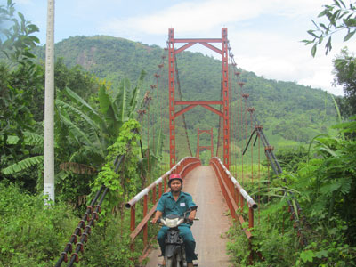 | Cầu treo thôn Ba Cẳng đã tạo thuận lợi cho người dân đi lại và vận chuyển nông sản. |