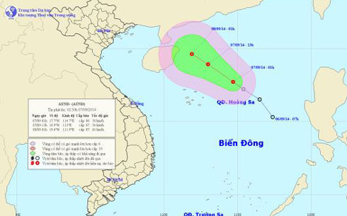 Theo Trung tâm dự báo Khí tượng và Thủy văn Trung ương, áp thấp nhiệt đới đang xuất hiện trên Biển Đông có khả năng mạnh lên. Hồi 1h ngày 7/9, vị trí tâm áp thấp nhiệt đới ở vào khoảng 17,7 độ vĩ Bắc; 114,7 độ kinh Đông, cách quần đảo Hoàng Sa khoảng 290km về phía Đông Đông Bắc. Sức gió mạnh nhất ở vùng gần tâm áp thấp nhiệt đới mạnh cấp 6, cấp 7 (từ 39 đến 61 km/giờ), giật cấp 8, cấp 9.