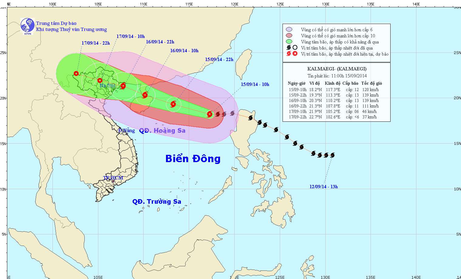 Khu vực nguy hiểm trong 24 giờ tới được xác định là vùng biển phía Bắc Vĩ tuyến 16, phía Đông Kinh tuyến 112. Sau đó vùng nguy hiểm là vùng biển Bắc Vĩ tuyến 17, bao gồm cả vịnh Bắc Bộ.