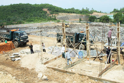 | Công trình đầu tư bãi rác Hòn Rọ theo công nghệ mới đang được khẩn trương xây dựng. |