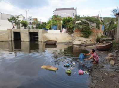 Theo người dân ở khu TĐC Vĩnh Trường, nước từ cống xả lúc nào cũng cuồn cuộn, khi màu đen, lúc đỏ bầm, hôi thối không thể chịu nổi. Trong khi đó, nhiều người dân còn mang rác thải sinh hoạt vứt tại miệng cống khiến môi trường nước càng thêm ô nhiễm. “Miệng cống ở đây xả nước mạnh lắm, đổ một thùng rác khoảng 5 phút là trôi hết ra biển, có gì đâu mà mất vệ sinh” - một người dân vừa đổ thùng rác xuống cống vừa nói.