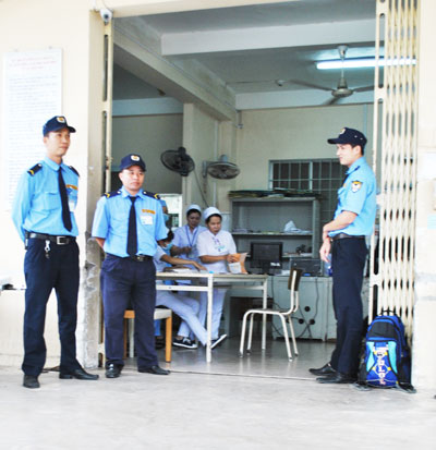 | Lực lượng bảo vệ Long Sơn trực tại Trung tâm Cấp cứu 115 tại Bệnh viện Đa khoa tỉnh. |