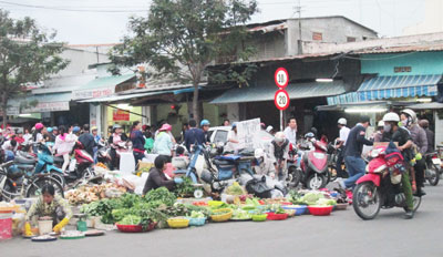 Tuy nhiên, sau 8 tháng triển khai thực hiện, tình trạng lấn chiếm vỉa hè, lòng đường để làm nơi buôn bán, họp chợ trái phép... vẫn tiếp diễn. Một số tuyến đường, tụ điểm sau khi Tổ liên ngành thành phố giải tỏa thành công bàn giao lại cho địa phương quản lý, nay lại bị lấn chiếm. Theo ghi nhận của chúng tôi, tại khu vực chợ Phước Thái, lòng, lề đường Võ Thị Sáu hiện nay đã biến thành điểm bán hàng hóa của một số người dân, gây cản trở giao thông. Tại khu vực chợ Phương Sơn, đường Phương Sài, chợ Xóm Mới... tình trạng lấn chiếm vỉa hè, lòng đường để buôn bán cũng diễn ra khá phức tạp. Nhiều hộ buôn bán còn xả nước và rác thải gây ô nhiễm môi trường. Một số hộ còn mổ gà, vịt, cá... tại chỗ, nước thải đổ ra đường gây mùi hôi tanh, ảnh hưởng đến người dân sinh sống gần khu vực. Tuyến đường Bửu Đóa, phường Phước Long hiện đang có khoảng 30 hộ dân tự ý bày bán rau, hoa quả, cá, thịt... dọc hai bên vỉa hè. Không chỉ vậy, vào sáng sớm, các hộ dân còn bày bán hàng hóa dưới lòng đường. Gần đây, tuyến đường Phùng Hưng được nâng cấp, mở rộng giao nhau với đường Bửu Đóa, tình trạng này càng trở nên phức tạp hơn.