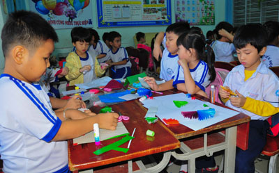 Ngày 6-2, Trường Tiểu học Phương Sài (TP. Nha Trang) tổ chức buổi sinh hoạt ngoại khóa với chủ đề “Em làm trẻ ngoan, em rèn tay khéo” với sự tham gia của hơn 1.000 học sinh toàn trường.