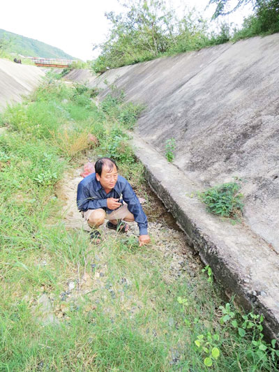 | Đoạn mương thoát lũ bị thấm nước |