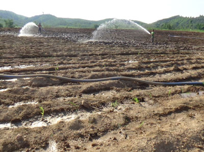 Sản xuất vụ hè thu ở huyện Khánh Vĩnh bắt đầu từ tháng 5 và kết thúc vào tháng 8. Dự kiến trong vụ này, huyện sẽ gieo sạ hơn 402ha lúa nước, 700ha bắp, 400ha cây hoa màu kết hợp trồng 1.700ha mì, duy trì 1.700ha mía... Thông thường, thời điểm này thường có mưa dông, nông dân sẽ gieo trỉa bắp, trồng mì, lúa và đậu. Tuy nhiên, năm nay khô hạn kéo dài, mưa dông lớt phớt khiến việc xuống giống chậm trễ so với mùa vụ. Nhiều nơi, đậu xanh, bắp đã trỉa, gặp nắng nóng trở lại nên hư giống. Bà Cao Thị Hạnh (thôn Suối Lách, xã Khánh Trung) cho biết: “Nhà tôi có 3 sào ruộng lúa nhưng vụ này sợ thiếu nước nên đã chuyển sang trồng đậu xanh. Hiện giờ cây đã mọc nhưng tôi vẫn lo, không biết có đủ nước để phát triển”.