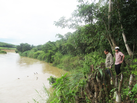 | Bờ sông tại thôn Suối Sâu, xã Khánh Đông có hiện tượng sạt lở |