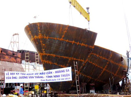 Ngày 13-10, Công ty TNHH một thành viên Đóng tàu Cam Ranh tổ chức lễ đặt ky tàu cá vỏ thép dịch vụ hậu cần nghề cá theo Nghị định 67.