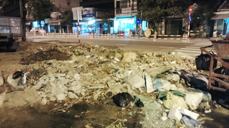 | Một điểm trên đường Lê Hồng Phong, phường Phước Long thường xuyên bị lén đổ xà bần |
