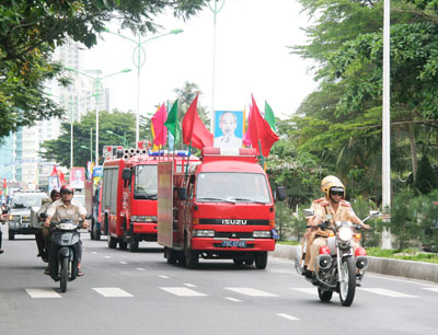 Hưởng ứng ngày toàn dân phòng cháy, chữa cháy (PCCC), sáng 4-10, tại Quảng trường 2-4, UBND TP. Nha Trang tổ chức lễ mít tinh, diễu hành biểu dương lực lượng PCCC và cứu hộ, cứu nạn của thành phố.