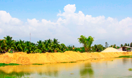 | Hiện các hộ dân ở thôn Tân Đức Tây đã dừng khai thác cát và đang tiến hành san lấp mặt bằng |