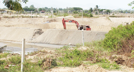 Đi trên con đường Hiệp Kiết - Bình Tiên, đoạn qua thôn Nước Ngọt, xã Cam Lập, trước mắt chúng tôi, ngoài những ao nuôi tôm trải bạt đang hoạt động, khá nhiều diện tích ao đất đang được người dân cho máy móc san ủi chuyển thành ao trải bạt để nuôi tôm. Thậm chí, một số diện tích đất trồng cây lâu năm dọc đoạn đường này về phía núi cũng đang được san ủi xây dựng ao trải bạt để nuôi tôm.