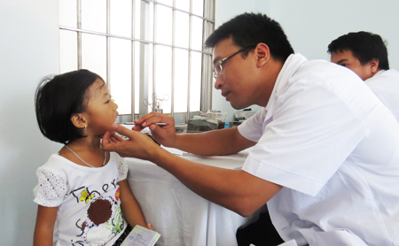 | Bác sĩ khám răng cho trẻ em trên đảo Bình Ba |