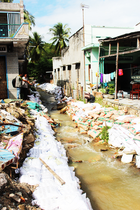 Từ đầu tháng 11 đến nay, các hộ: Võ Thị Mai, Phạm Thanh Tùng, Nguyễn Đình Quý (nhà nằm dọc con mương thoát nước nói trên) đứng ngồi không yên vì phần móng nhà và tường rào đã bị sạt do đợt mưa lớn vừa qua. Theo những hộ dân này, trước đây, con mương vốn là đường đất chạy dọc theo hướng tây - đông và nối vào Quốc lộ (QL) 1A. Nhưng thời gian gần đây, dòng chảy của con suối từ núi Hàm Rồng ở phía tây bị thay đổi nên vào mùa mưa, đường biến thành mương thoát nước với lưu lượng và tốc độ dòng chảy rất lớn. Đã vậy, họng cống thoát nước qua QL1A (thu nước từ con mương này) vừa được mở rộng khẩu độ nên gây ra tình trạng sạt lở mương và sạt móng nhà dân.