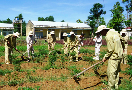 | Các học viên tại Trung tâm Điều trị nghiện đa chức năng tham gia lao động |
