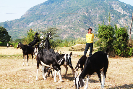 Chúng tôi đến nhà ông Cầm Vấn (thôn Giải Phóng, xã Cam Phước Đông) khi ông đang lùa đàn dê ra đồng ăn cỏ. Bên cạnh những con dê lớn phổng phao, ông còn có đàn bò 3 con với giá bán mỗi con lên đến vài chục triệu đồng. Cạnh nhà ông Vấn là khoảnh vườn luôn tươi tốt với đủ các loại rau, cây ăn quả bởi ông đã đầu tư 10 triệu đồng đào giếng nước tưới từ nhiều năm nay. Nhìn cơ nghiệp của ông Vấn, ít ai biết trước đây ông thuộc diện hộ nghèo. Kể lại câu chuyện thoát nghèo, ông Vấn cho biết: “Cách đây khoảng 5 năm, tôi có vay 10 triệu đồng của Ngân hàng Chính sách xã hội để đầu tư nuôi bò. Năm 2011, chương trình hỗ trợ người nghèo của tỉnh đã tặng tôi 3 con dê. Tôi đầu tư thêm nuôi thành đàn 17 con, mới bán 4 con để trang trải cuộc sống và tái đầu tư. Từ khi được Nhà nước hỗ trợ, lại được hướng dẫn kỹ thuật chăn nuôi, kinh tế gia đình tôi đã khá hơn trước rất nhiều, con cái cũng yên tâm học hành”.