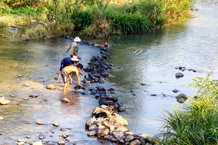| Người dân Khánh Vĩnh chặn dòng sông khế để lấy nước sinh hoạt |