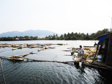 Ông Lê Thành Trực, Phó Giám đốc Ban quản lý Dự án các công trình Giao thông và Thủy lợi cho biết, sau khi nhận mặt bằng từ UBND TP. Nha Trang, đơn vị đã bàn giao cho các đơn vị thi công tiến hành nạo vét. Tuy vậy, do công tác quản lý của các đơn vị thi công chưa chặt chẽ nên người dân từ nhiều địa phương đã lấn chiếm mặt nước để nuôi vẹm. Bè tre được người dân làm trên bờ, sau đó lợi dụng lúc đêm tối thả bè xuống sông. Phía chủ đầu tư đã phát hiện sự việc từ cuối năm 2015 và báo cáo, đề nghị chính quyền các địa phương cùng tìm cách giải quyết. Thế nhưng, do khó khăn về địa hình, phương tiện nên việc giải quyết, kê khai, kiểm đếm không thuận lợi, số lượng ô bè ngày càng phát triển. “Chúng tôi đã nhiều lần đến kiểm tra nhưng không gặp người nuôi trồng, nếu có thì cũng chỉ gặp những người tự nhận làm thuê. Nhiều chủ bè chỉ có mặt mỗi khi thu hoạch vẹm. Chúng tôi đã nhiều lần khuyến cáo người dân về việc dừng đầu tư ô bè để tránh thiệt hại nhưng họ không hợp tác”, ông Trực giải thích.
