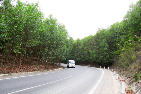 | Nhiều diện tích rừng keo ven đường ở huyện Khánh Vĩnh đứng trước nguy cơ cháy cao |