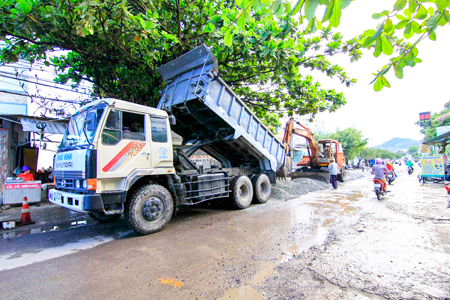 | Đơn vị thi công thực hiện sửa đường |