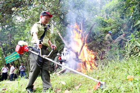 Bên cạnh thực hiện đồng bộ các biện pháp PCCCR, hàng năm, chi cục còn tiến hành tập huấn, diễn tập để nâng cao năng lực PCCCR cho các đơn vị trực thuộc, chủ rừng và các địa phương trong tỉnh. “Nội dung tập huấn chủ yếu là những quy định của Luật Phòng cháy chữa cháy và các văn bản hướng dẫn; những vấn đề cơ bản trong PCCCR; việc sử dụng các trang thiết bị để PCCCR; các tình huống, biện pháp xử lý cháy rừng… Chi cục còn tổ chức diễn tập nâng cao năng lực PCCCR nhằm nâng cao ý thức, trách nhiệm về công tác PCCCR cho cán bộ, nhân dân, cộng đồng dân cư nơi có rừng và nâng cao khả năng phối hợp giữa các lực lượng trong công tác chữa cháy rừng theo phương châm “4 tại chỗ”. Qua diễn tập, các tình huống trong chữa cháy rừng, cứu người bị nạn, sử dụng trang thiết bị… được thực hiện khá thuần thục”, ông Nguyễn Khương cho biết.