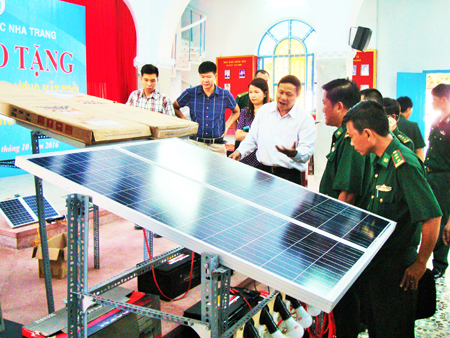 Ngày 20-10, Trường Đại học Nha Trang tổ chức trao tặng 2 hệ thống điện năng lượng mặt trời cho Bộ Chỉ huy Bộ đội Biên phòng tỉnh trong chương trình “Thắp sáng nơi đảo xa”, tại 2 tổ công tác Bãi Dầm và Hố Na thuộc Đồn Biên phòng Đầm Môn.