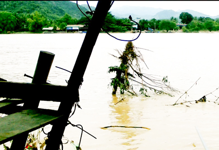 Rạng sáng 14-12, cầu gỗ Phú Kiểng bắc qua sông Cái Nha Trang đã bị lũ cuốn trôi lần thứ hai (ảnh) khi gần hoàn thành việc khôi phục, sửa chữa với tổng kinh phí gần 900 triệu đồng.