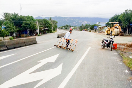 Cục Quản lý đường bộ III vừa đồng ý cho Công ty Cổ phần Đầu tư xây dựng 194 thi công đóng điểm mở dải phân cách tại km 1519+990 (xã Cam Thịnh Đông, TP. Cam Ranh); kết hợp lắp tấm chống lóa loại I theo quy mô kỹ thuật của dự án.