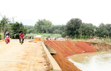 | Cầu Suối Khao qua Tỉnh lộ 8 đã được khắc phục tạm thời để bảo đảm giao thông |