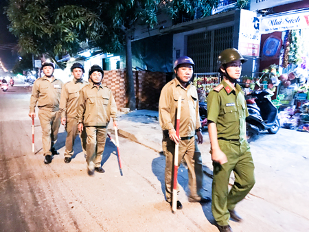 | Ban bảo vệ dân phố phường Vĩnh Nguyên tuần tra |