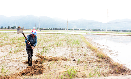 Mưa lũ đã qua nhưng trên cánh đồng ở các xã: Diên Thạnh, Diên Lạc, Diên Phú, Diên Điền… nước chỉ vừa mới rút, có nơi vẫn còn trắng đồng; nhiều chân ruộng nằm ven sông, suối hiện nay vẫn bị cát vùi lấp. Ông Nguyễn Ngọc Phong (xã Diên Thạnh) cho biết, vụ đông xuân năm nay, gia đình ông làm 4.000m2 ruộng, nhưng gieo lần nào lại mất giống lần đó. Sau 4 lần mưa lũ, gia đình ông đã thiệt hại hơn 3 tạ lúa giống. Trong khi đó, nhiều diện tích ruộng bị cát vùi lấp khiến người dân phải bỏ vụ. Các hộ làm màu, cây cảnh trên địa bàn huyện cũng thiệt hại lớn. “Các lứa rau tôi gieo để bán vào dịp Tết đều ngâm trong mưa lũ. Hiện nay nước đã rút nhưng không thể tái sản xuất kịp cho mùa vụ Tết”, bà Ngô Nữ Quý Khuê (xã Diên Điền) nói.