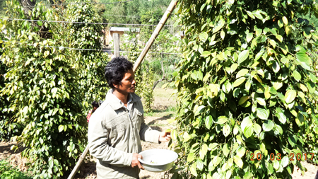 | Nhờ áp dụng khoa học kỹ thuật nên vườn tiêu nhà ông Cao Lĩnh luôn cho năng suất cao |