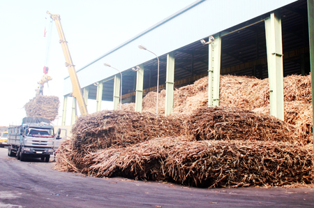 | Số mía người dân đã chặt đang tiếp tục được đưa về Nhà máy Đường Khánh Hòa (ảnh chụp chiều 31-3) |