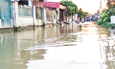 | Đoạn đường hẻm 404 Lê Hồng Phong bị ngập nước kéo dài nhiều tháng nay |