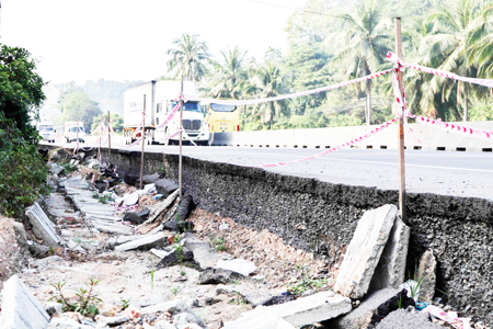 Tuy nhiên, việc khắc phục, sửa chữa trên các đoạn tuyến QL1 mới chỉ có các chủ đầu tư BOT làm hoàn tất. Còn lại, một số điểm trên tuyến do nhà đầu tư thực hiện bằng vốn trái phiếu Chính phủ chưa làm xong. Trao đổi với chúng tôi về vấn đề này, ông Tạ Thanh Tình - Chi cục trưởng Chi cục Quản lý đường bộ III.3 cho biết, hiện tại, tình hình giao thông trên tuyến QL1 tương đối an toàn, tuy nhiên các điểm bị bão lũ gây hư hỏng nặng nề chưa được sửa chữa kịp thời. Chi cục đã nhiều lần có văn bản yêu cầu các đơn vị sửa chữa để đảm bảo giao thông tốt nhất, nhưng nhà đầu tư hồi đáp vốn chưa được phê duyệt nên chưa thể triển khai. Hiện tại, nhiều điểm hư hỏng có nguy cơ bị lan rộng, nhất là các điểm bị sạt lở, xoáy hàm ếch xe đi nhiều đã khiến lớp bê tông trên mặt đường bị bể theo. “Cùng với việc hối thúc nhà đầu tư sửa chữa, nhằm bảo đảm an toàn giao thông, chúng tôi yêu cầu đơn vị duy tu, bảo dưỡng trước mắt phải cắm cọc chăng dây cảnh báo các khu vực có nguy cơ sạt lở và mất an toàn. Đồng thời, yêu cầu các đơn vị này khẩn trương dùng đất, đá lấp tạm vào các điểm sụt lún không để hư hỏng lan rộng. Thời gian tới, chúng tôi sẽ tiếp tục kiến nghị, hối thúc nhà đầu tư nhanh chóng sửa chữa các điểm hư hỏng trên tuyến”, ông Tình nói.