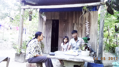 Gia đình bà Cao Uyên thiếu đất sản xuất 4 - 5 năm nay và phải chật vật với từng bữa ăn hàng ngày. Trước đây, gia đình bà xâm canh sản xuất bên địa phận huyện Cam Lâm, nhưng năm 2012 thì bị thu hồi đất. Không có đất sản xuất, chồng lại bị mù lòa, cuộc sống cả gia đình 5 người nhà bà trông chờ hoàn toàn vào tiền làm thuê làm mướn của đứa con lớn và việc cắt lá chuối, hái măng, hái đót trên rừng của bà.