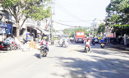 Hiện nay, trên tuyến đường Điện Biên Phủ, ổ gà, ổ voi chằng chịt, nền đường bị cày xới, nhiều chỗ lộ nguyên cả nền đất. Bà Chu Thúy Hằng, người dân sống ở tuyến đường này cho hay, con đường có mật độ phương tiện lưu thông lớn, thường xuyên bị xuống cấp. Mấy năm nay, các cơ quan chức năng đã quan tâm, sửa chữa để bảo đảm giao thông cho các phương tiện và người dân đi lại. Tuy nhiên, từ đợt mưa lũ cuối năm ngoái đến nay, con đường này bị xói lở nghiêm trọng, nhất là đoạn qua Trường Tiểu học Vĩnh Hòa 1, khiến phụ huynh đưa đón các cháu đi lại rất khó khăn. Ông Dương Văn Trọng, gần nhà bà Hằng cũng than phiền, đường ổ gà, ổ voi quá nhiều, trời tối đi lại rất khó khăn. Không chỉ vậy, tuyến đường này có nhiều xe tải chở đất đá lưu thông, chạy với tốc độ cao khiến bụi bay mù mịt và gây mất an toàn giao thông.