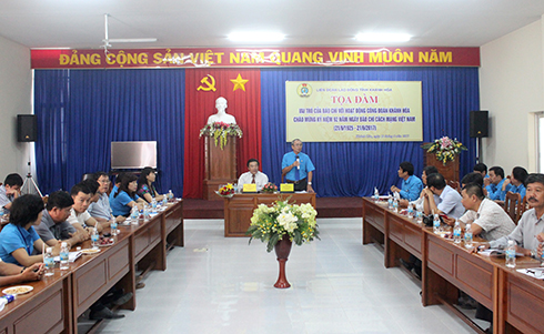 Ngày 16-6, Liên đoàn Lao động tỉnh Khánh Hòa tổ chức gặp mặt và tọa đàm "Vai trò của báo chí với hoạt động Công đoàn Khánh Hòa". Đại diện lãnh đạo các sở, ngành và các cơ quan báo chí trên địa bàn tỉnh đến dự.