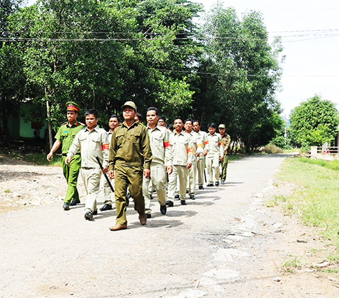 Đội tự quản an ninh, trật tự xã Khánh Thành trong buổi huấn luyện |