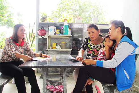 Cán bộ dân số tuyên truyền tại nhà người dân về mất cân bằng giới tính khi sinh |