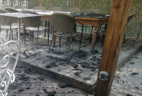 Tại hiện trường, trong khoảng diện tích hơn 40m2 mái hiên di động phủ trên quầy bán cà phê đã bị cháy sạch. Các xỉ than rơi xuống khiến một số bàn cà phê, ghế bị hư hỏng. Nhân viên ở đây cho biết, khi xảy ra cháy quầy cà phê đang nghỉ bán. "Hoàn toàn không có hoạt động nào có thể dẫn đến hỏa hoạn. Vì quầy đang nghỉ bán để đơn vị thi công làm đường vào khu vực quầy. Chúng tôi nghi ngờ thợ hàn xì ở công trình đang thi công ở bên cạnh quầy bán cà phê đã làm xỉ hàn văng vào mái hiên gây cháy", một nhân viên khách sạn cho biết. Tuy đám cháy đã nhanh chóng dập tắt nhưng đã khiến nhiều người đang tắm, phơi nắng tại hồ bơi của khách sạn một phen sợ hãi.