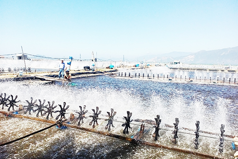 Mô hình nuôi tôm thẻ chân trắng trên bạt của hội viên Lê Quang Toàn, xã Vạn Thọ. |