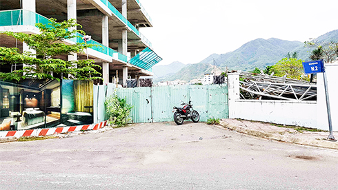 Đường N2 bị đơn vị thi công khách sạn cao cấp chiếm dụng trái phép. |