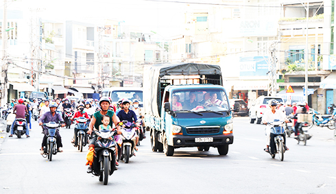 Xe tải dưới 3,5 tấn lưu thông trên đường 2-4, Nha Trang. |