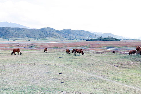Lòng hồ Suối Trầu đang trở thành nơi chăn thả gia súc. |