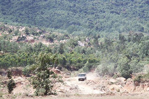 Tình trạng khai thác đất, đá tại núi Hòn Rồng thuộc xã Cam An Nam, huyện Cam Lâm. |
