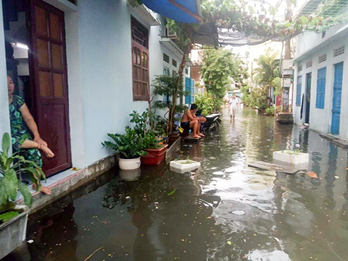 Ngập úng tại hẻm 305 Lê Hồng Phong mỗi khi có mưa lớn. |