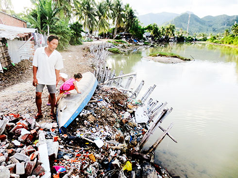 Công trình xử lý ô nhiễm ở thôn Văn Đăng 2, xã Vĩnh Lương, TP. Nha Trang đã được làm lại 2 lần nhưng đều bị sóng đánh tan. Hiện nay, khu vực này đang bị sóng biển đánh sạt lở, ăn vô đường đi, uy hiếp khu dân cư.